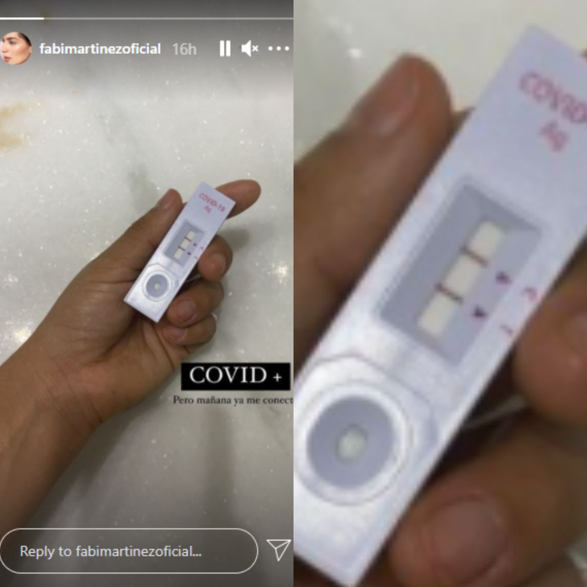 "Covid +" publicaba Fabiola Martínez en una historia de Instagram que mostraba en imagen una prueba PCR (Reacción en Cadena de la Polimerasa) similar a un test de embarazo con la misma funcionalidad.