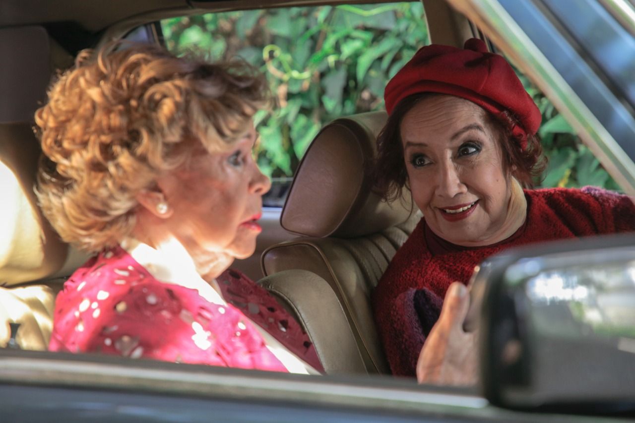 Margarita Irún y su compañera en "Las Herederas" María Martins ("Pituca") viajan en auto rumbo a una fiesta mientras el personaje de Amada Gómez les envía fotos y videos desde el lugar.