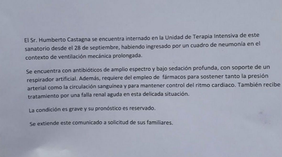 También recibe tratamiento por una falla renal aguada en esta delicada situación. La condición es grave y su pronóstico es reservado".
