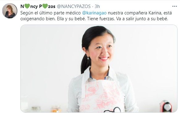 Esta sábado a la mañana, la periodista utilizó sus redes sociales para dar las últimas noticias sobre la salud de Karina. El parte médico indicó que la cocinera y su hijo están oxigenando muy bien, “Tiene fuerzas y van a salir”, comentó Nancy.