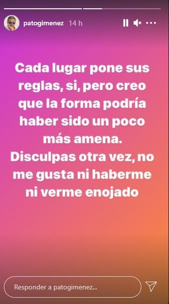 Y añadió: "Cada lugar pone sus reglas, sí, pero creo que la forma podría haber sido un poco más amena. Disculpas otra vez, no me gusta ni haberme ni verme enojado".