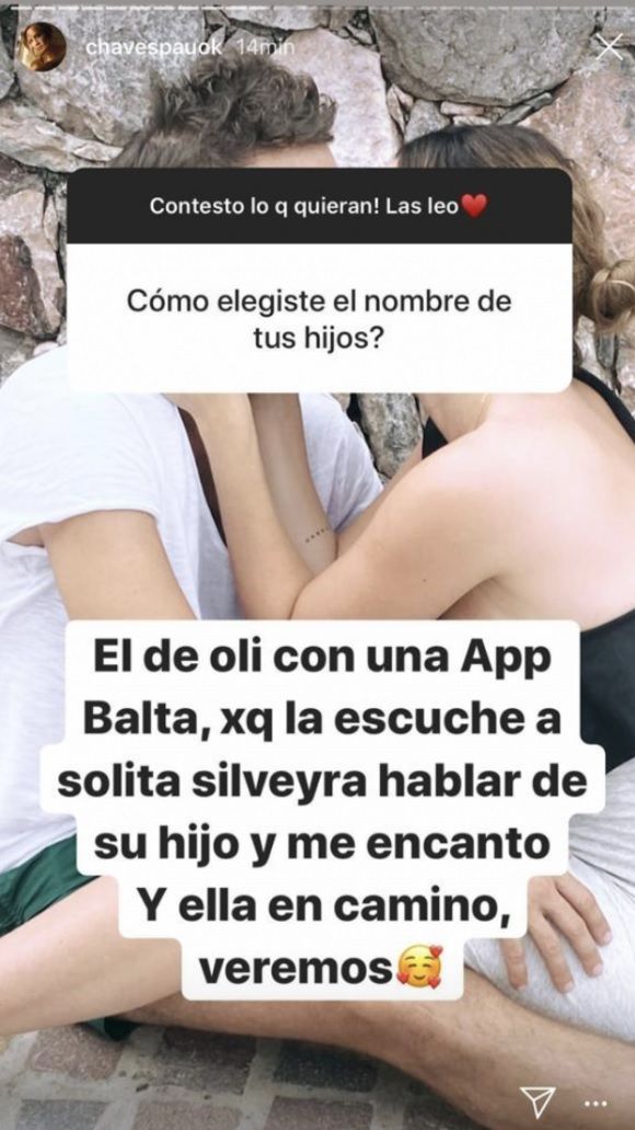Y allí reveló su método: "El de Oli, a través de una app. El de Balta, porque la escuché a Solita Silveyra hablar de su hijo y me encantó. Y ella en camino (su hija), ya veremos".