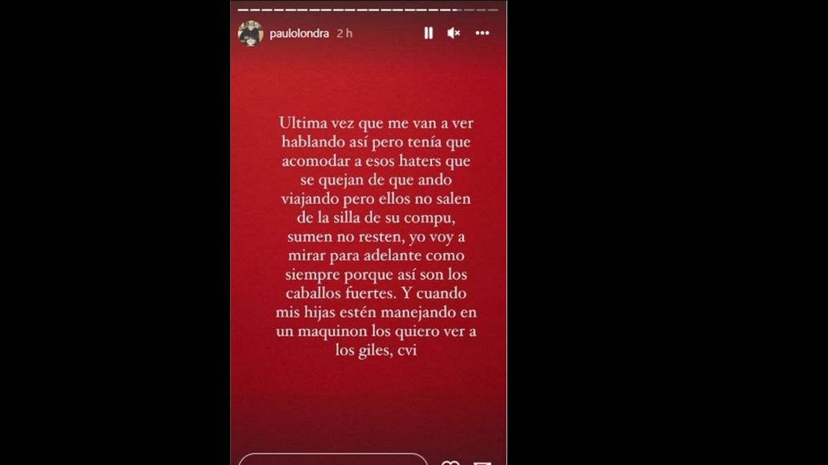 Al observar varios comentarios donde lo cuestionaban por sus viajes al exterior, Paulo Londra hizo un fuerte descargo desde Instagram donde se lo notó muy enojado.