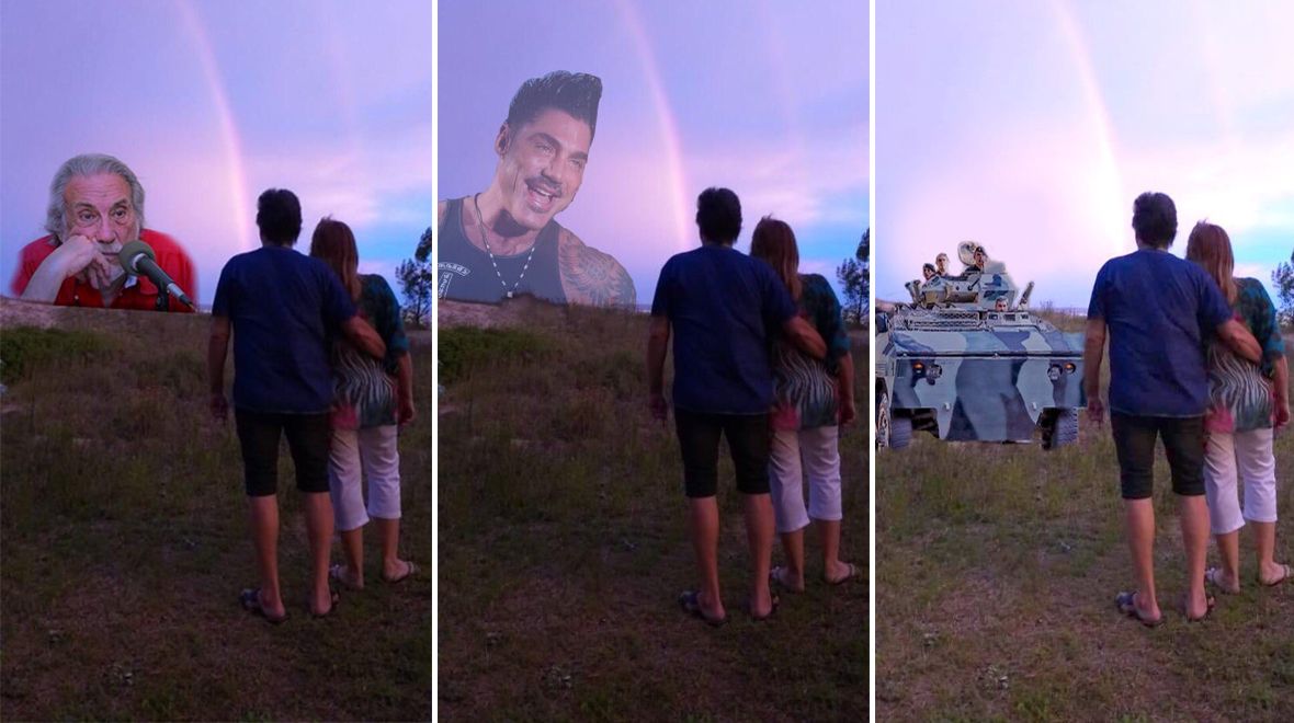 Desde allí, la conductora compartió una romántica foto mirando al horizonte y pidió a sus seguidores que la ayudaran a borrar a otras dos personas que aparecían en el fondo de la imagen.