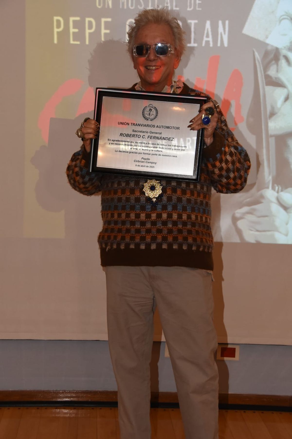 Este martes por la tarde, en la sede de UTA, Pepe Cibrián presentó ante los medios de comunicación la gira nacional que llevará a cabo con su obra "Calígula". Durante el evento, además de hablar sobre los destinos que recorrerá con la obra, recibió un merecido reconocimiento por parte de Rubén Villafañe, Secretario de Cultura Nacional de UTA, y Mario Eduardo Caligari, Secretario de Prensa y Difusión. El reconocimiento fue entregado en agradecimiento por su visita a la casa de todos los trabajadores, así como por su dedicación y amor al arte y la cultura.