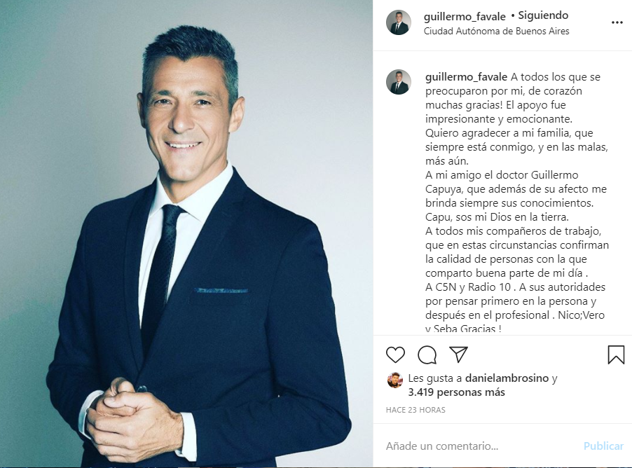 Posteo en Instagram de Guillermo Favale