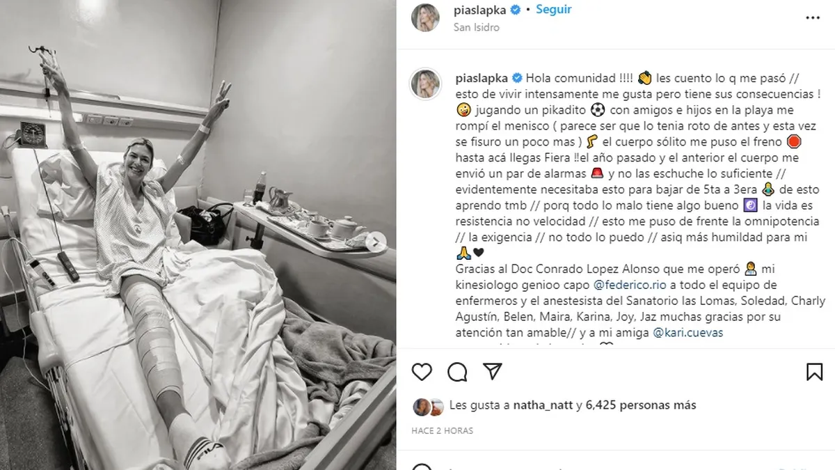 Pía Slapka sorprendió a poco de que comience el año al mostrar imágenes de la intervención quirúrgica que sufrió luego de sufrir una lesión en los meniscos tras un partido de fútbol con amigos y sus hijos en la playa.