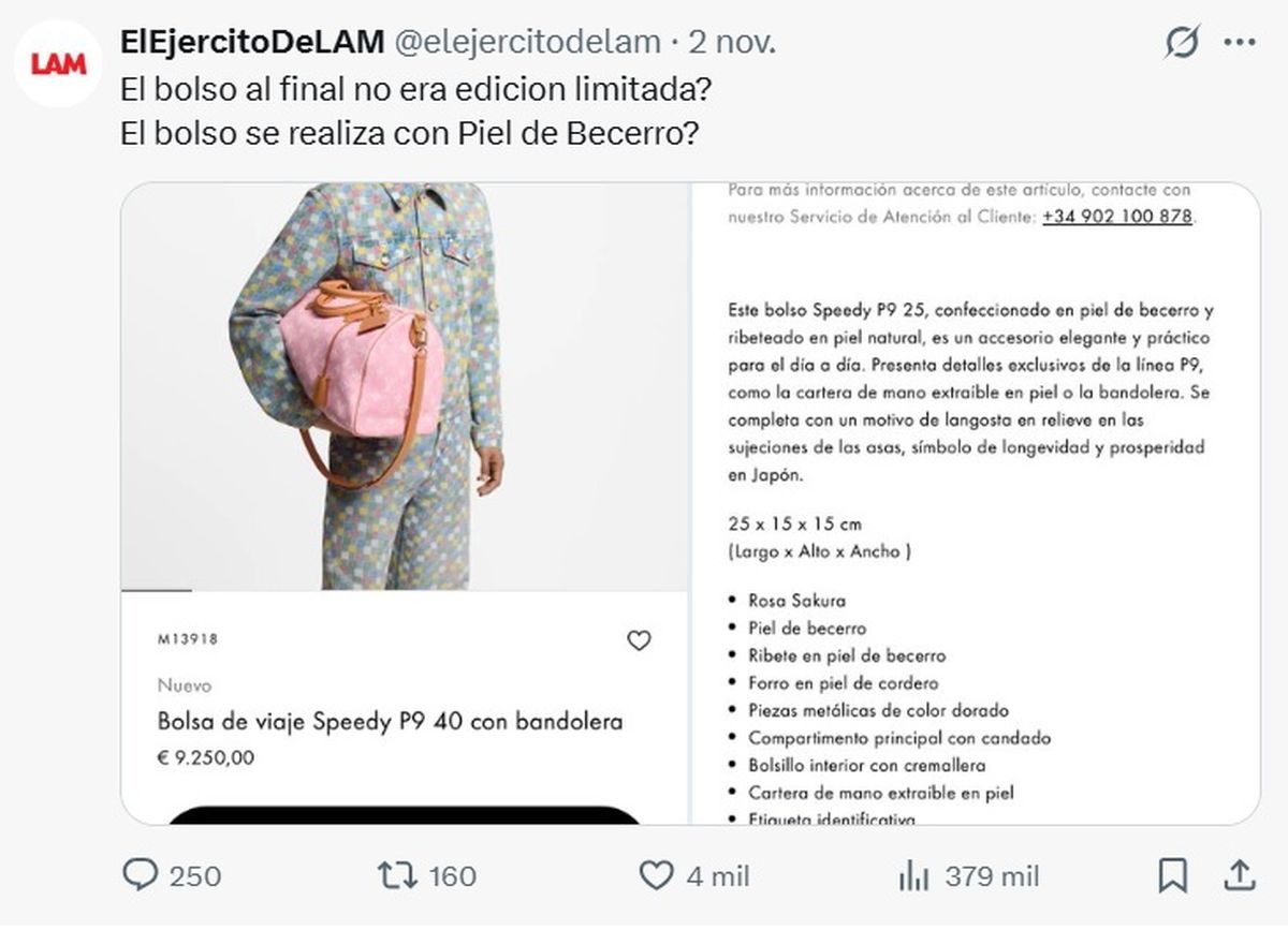 Los seguidores de la actriz descubrieron un detalle que abrió un fuerte debate entre los internautas tras la publicación de la cuenta de LAM en X @elejercitodelam con el real origen del accesorio.