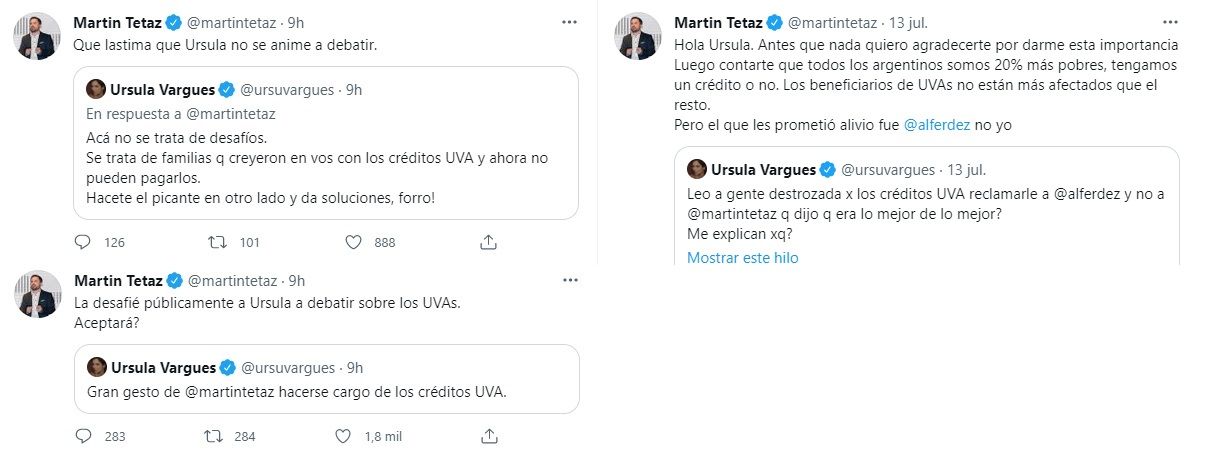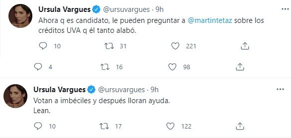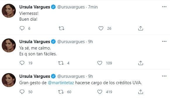Lo cierto es que tras esta polémica, Ursula volvió a ser tendencia en Twitter tras su fuerte cruce con Martín Tetaz, que será candidato a diputado por Juntos por el cambio. La ex panelista y el economista se cruzaron por los créditos UVA.
