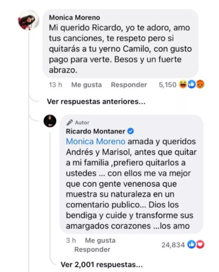 A ese comentario se le sumaron varias respuestas, incluso la del propio Ricardo Montaner.