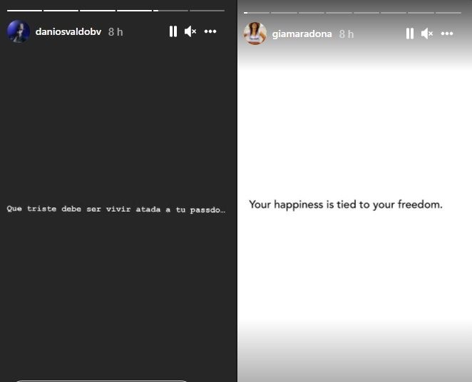 En este contexto, Osvaldo lanzó un fuerte mensaje desde sus historias de Instagram, ¿apuntando a Barón? “Qué triste debe ser vivir atada a tu pasado...”, escribió el ex futbolista. En tanto, Gianinna comentó en otra historia: “Your happiness is tied to your freedom” (”tu felicidad está ligada a tu libertad”).