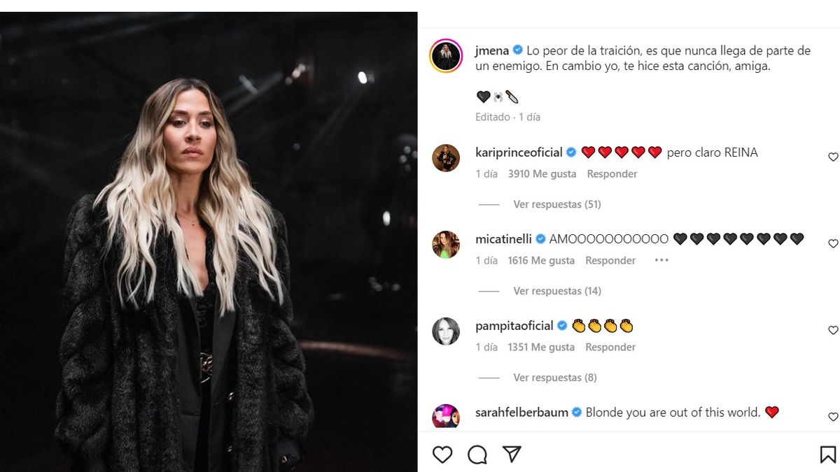 "Quién iba a imaginar, Que fue al final mi amiga, La que tanto me quería, Me engañaba", dice un pasaje de la letra de lo nuevo de Jimena Barón que de manera automática lleva a pensar en el involuntario triángulo amoroso en el que quedó involucrada con el padre de su hijo Momo, Daniel Osvaldo, y su entonces amiga, Gianinna Maradona.