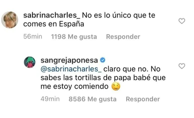 Así entre los cometarios puede leerse, por ejemplo, que le dicen "Yo también haría desastres con esa belleza", y cosas por el estilo, aunque también aparecieron los haters. "No es lo único que te comes en España", fue uno de los comentarios que recibió el posteo de la actriz.