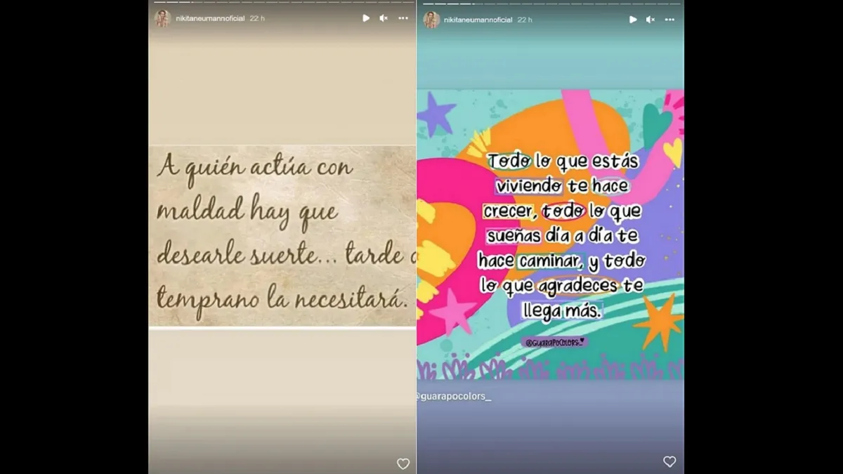 "A quien actúa con maldad hay que desearle suerte, tarde o temprano la necesitará...", indicó la modelo reflexiva desde sus historias. Y agregó con firmeza en otro mensaje: "Todo lo que estás viviendo te hace crecer, todo lo que sueñas día a día te hace caminar y todo lo que agradeces te llega más".