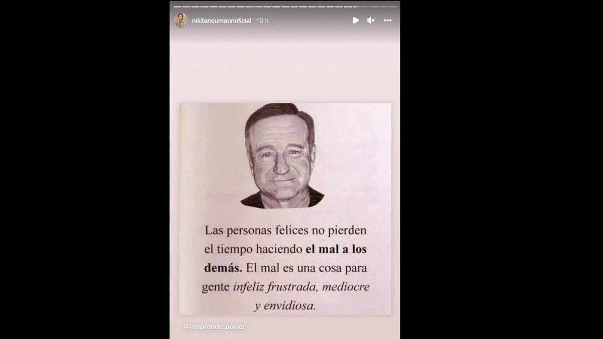 Tras una serie de fuertes posteos horas después de este video, Nicole Neumann dejó una picante frase desde sus historias de Instagram poniendo así un poco más de leña al fuego en la rivalidad que mantiene con la ex Combate.
