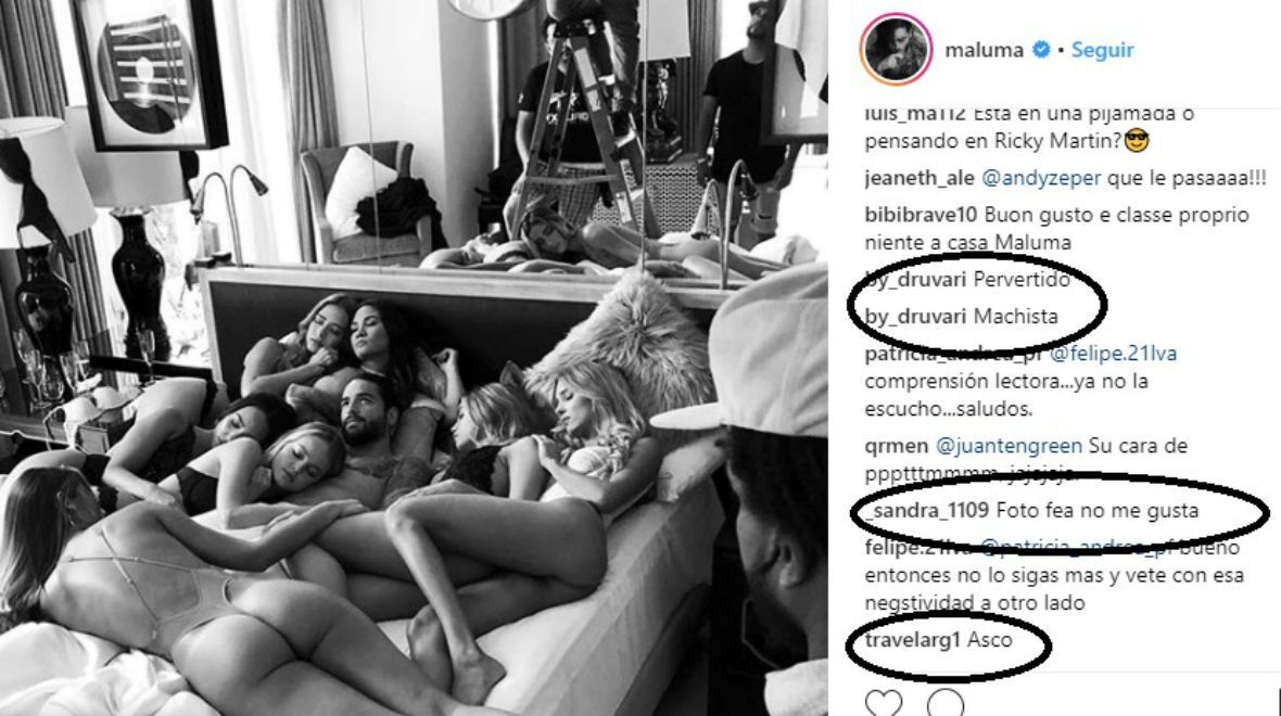 El cantante posteó una imagen de lo que parece ser el back de un videoclip. Pero en la misma, se encuentra en la cama con siete mujeres semi desnudas.