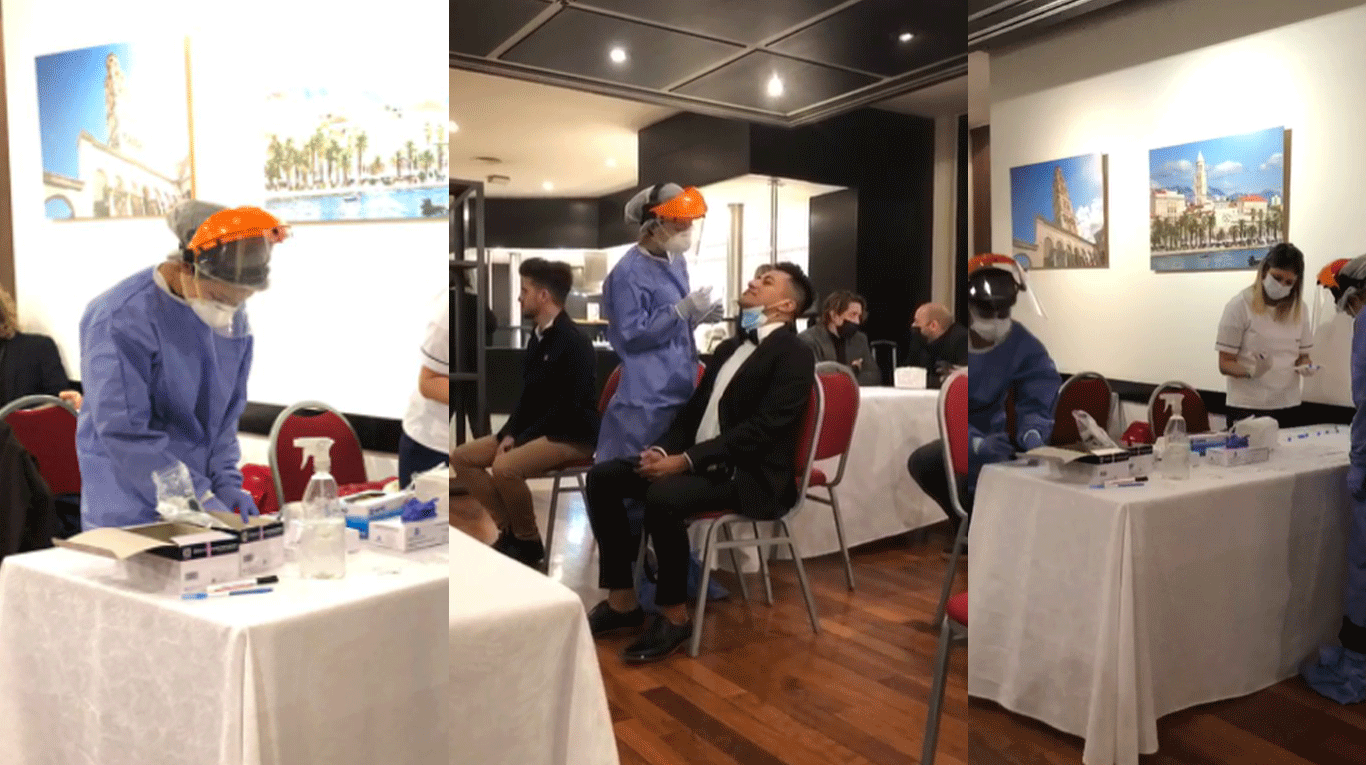 Algunos de los invitados llegaron con el resultado negativo de coronavirus, mientras que otros debieron testearse en el laboratorio armando especialmente por Telefe en un sector del hotel Hilton.