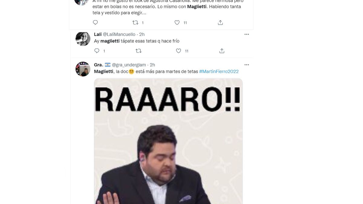 Muchos usuarios en la red social -en su mayoría mujeres- apuntaron el detalle de que Maglietti estaba casi con sus pechos al descubierto.