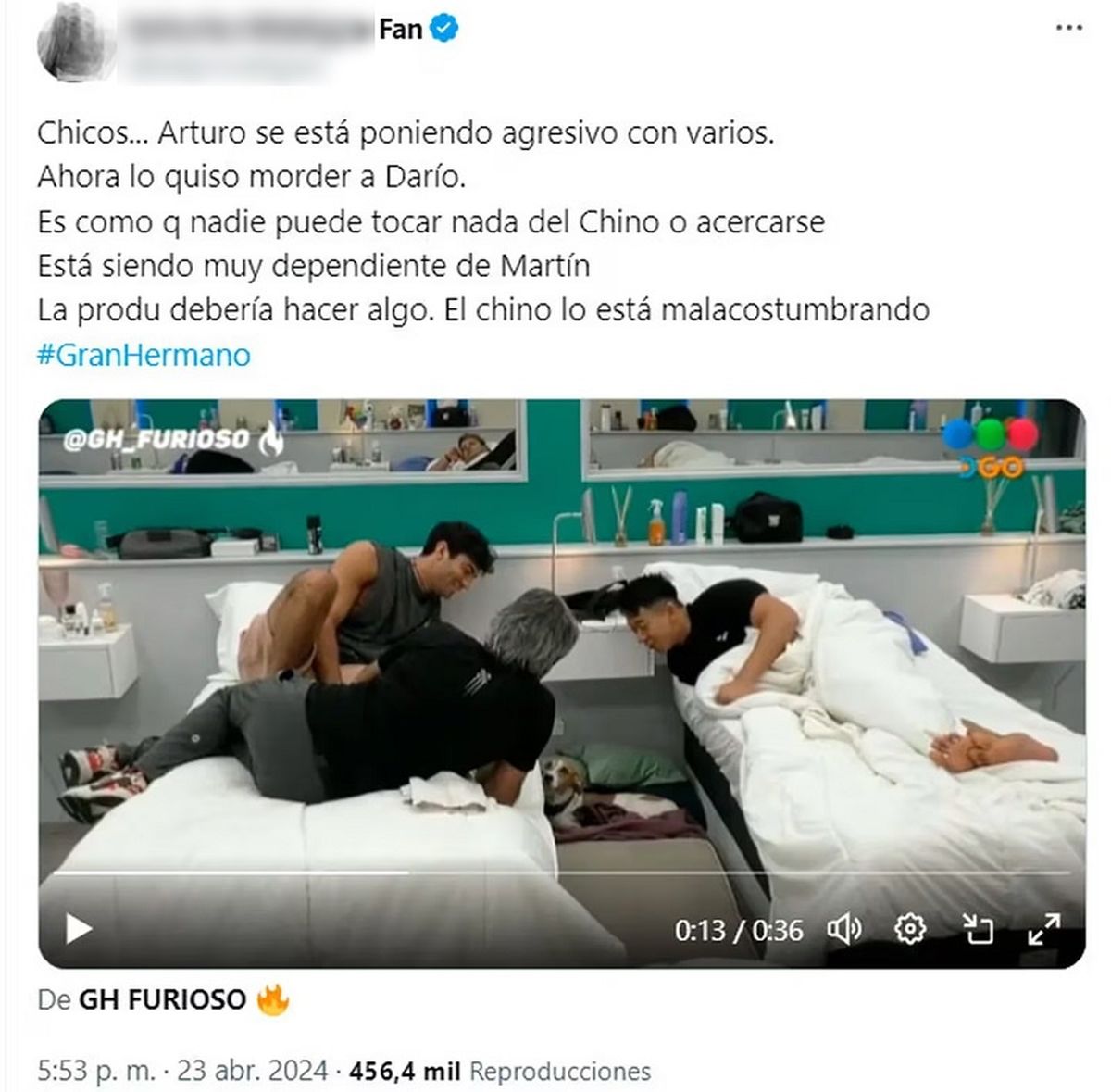 Rápidamente este clip se volvió viral y algunos comentarios en X fueron: "Arturo la tiene re clara , ya le sacó la ficha a Coti", "Los perros se dan cuenta de la vibra de cada uno", "Desconfío cuando a mi perro no le gusta alguien. Ellos perciben", "Huelen cuando son malas personas".