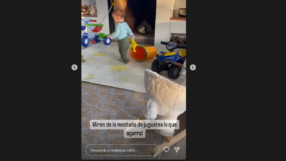 "Estoy llorando", indicó Noelia Marzol en sus historias. Y le dijo a su hijo sorprendida por su actitud: "¿Podes jugar como un bebé normal?".