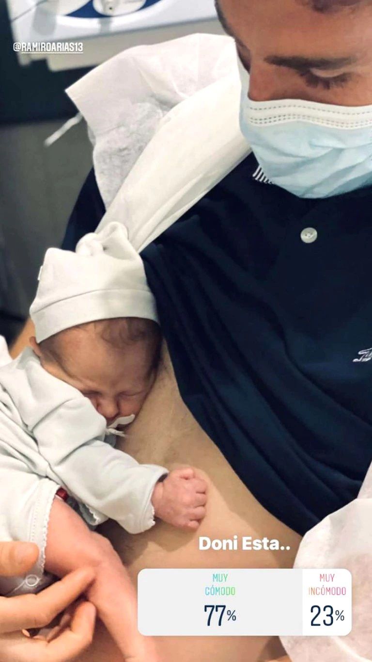 “¡Nació Doni! Anoche 21 rompí bolsa. Vinimos al Sanatorio Otamendi y a las 04.58 nació por parto natural el amor de nuestras vidas. Rami ayudó al doctor Javier Singla a sacarlo mientras Claudia Lozano me enseñaba y contenía”, señaló Noelia.