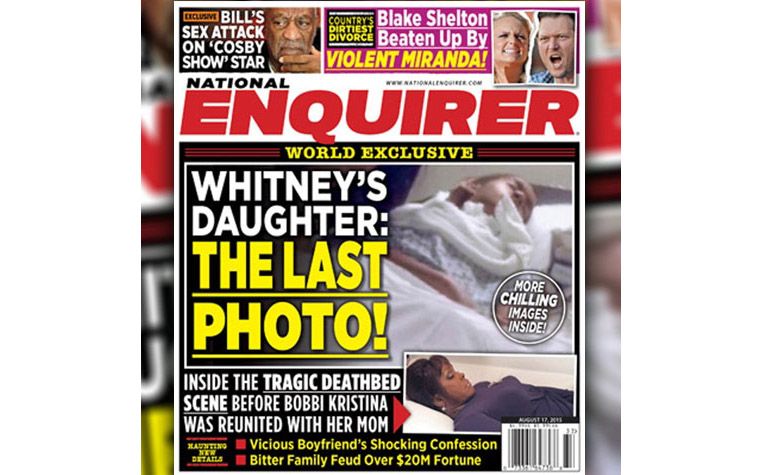 La última foto con vida de Bobbi Kristina es tapa del diario The National Enquirer. La publicación indica que la imagen fue tomada en el hospital para enfermos terminales donde se encontraba la hija de Whitney Houston.