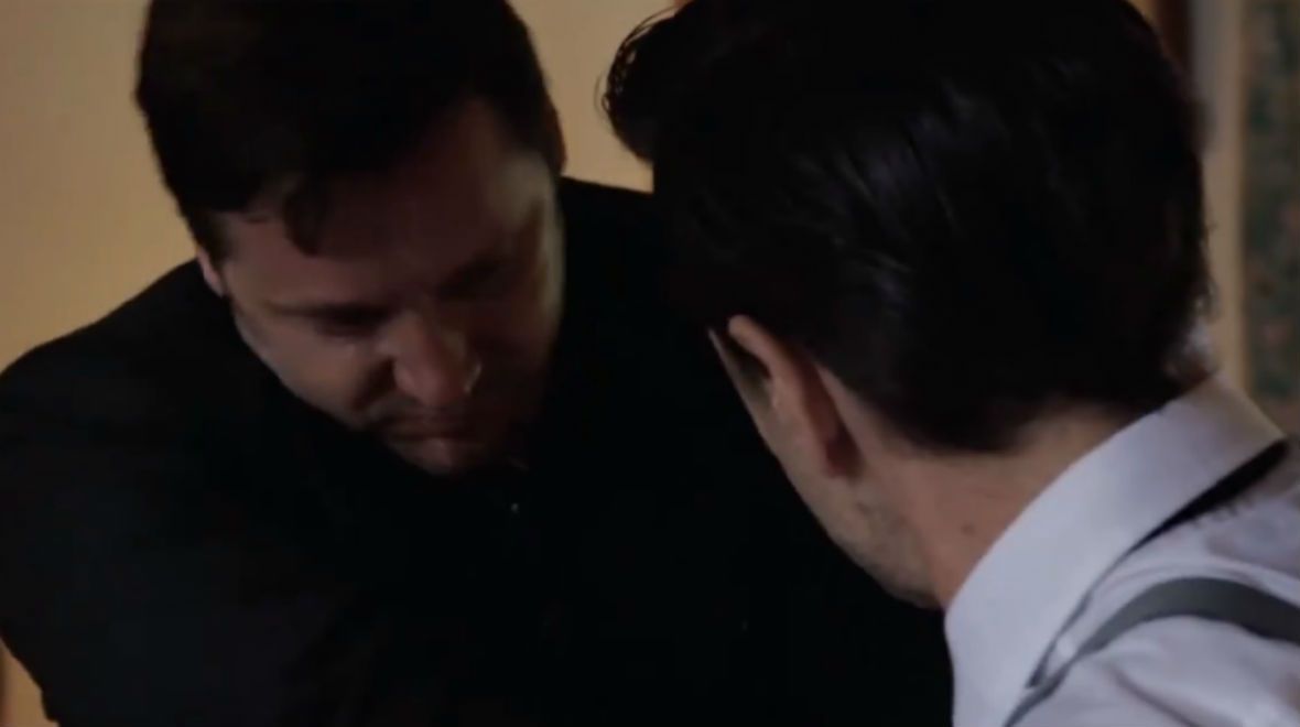 Torcuato Ferreyra (Benjamín Vicuña) lleva adelante su siniestro plan y le clava una espada en el abdomen a Delucca (Esteban Pérez).