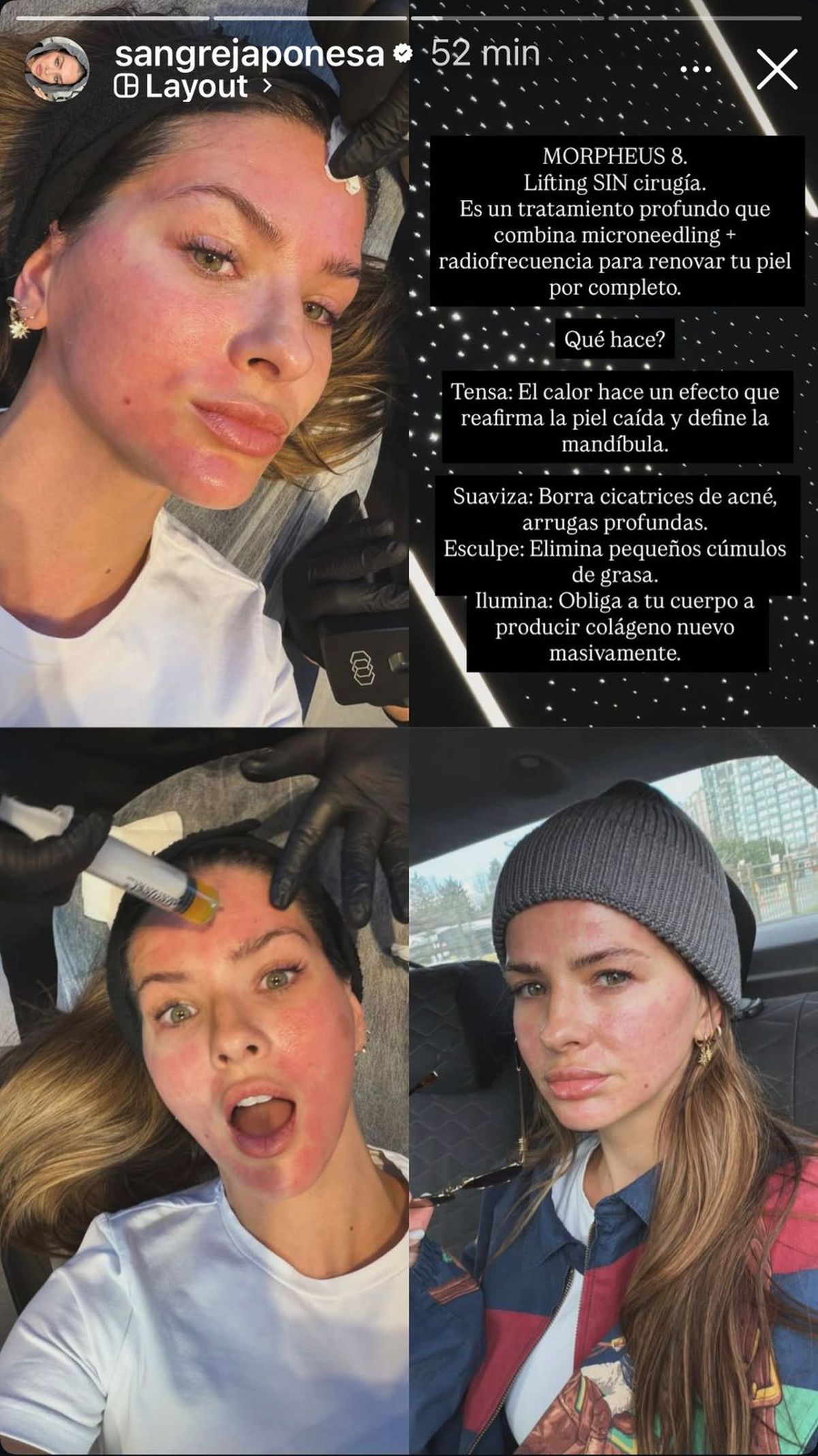 "Morpheus 8, Lifting SIN cirugía", es el nombre del "tratamiento profundo que combina microneedling más radiofrecuencia", que se hizo la actriz para renovar la piel por completo. Y lejos de ocultar las lógicas consecuencias inmediatas tras el proceso, Eugenia Suárez mostró abiertamente su cara enrojecida, hinchada e inflamada.