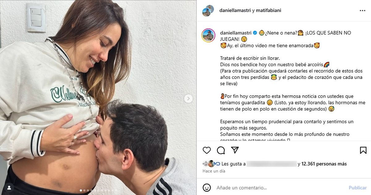 Y por último se despidió de sus 168 mil seguidores desafiándolos a adivinar el sexo del inminente nuevo integrante de la familia. "Aceptamos todo el amor y buenas energías que tengan para darnos. ¡Nosotros ya sabemos el sexo pero quiero jugar! ¿Para ustedes qué es: nena o nene? Los quiero. ¡Gracias por el amor!", concluyó a pura emoción.