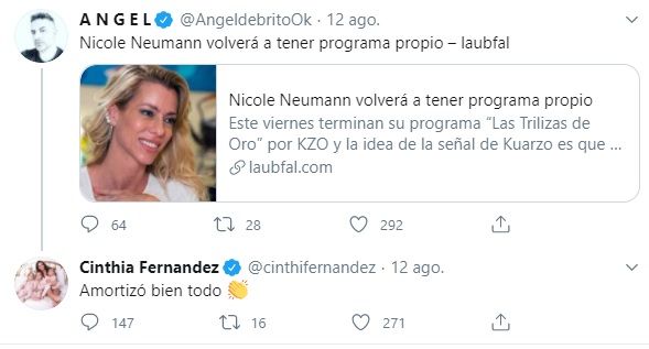 En "El show del problema", El Nueve, Mica Viciconte había respondido a la captura de WhatsApp que publicó Nicole Neumman donde hablaba con su empleada doméstica y explicó que no puede explayarse mucho al respecto porque tiene un bozal legal que se lo impide.