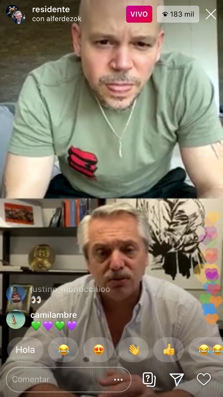 El cantante le consultó por el pago de la deuda externa con el Fondo Monetario internacional (FMI), a lo que el Presidente aseguró que el país no va "a pagar la deuda" con el FMI "a costa de los argentinos" y consideró que "tienen que entender el momento que estamos pasando".