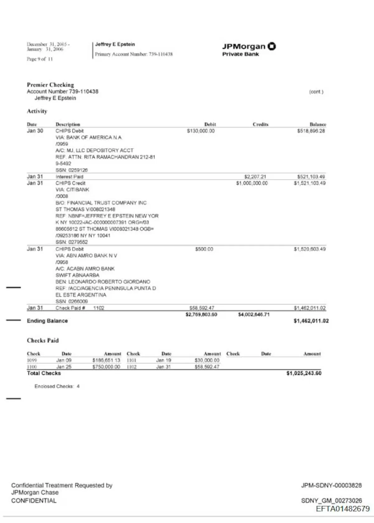 De acuerdo a extractos bancarios incorporados en los archivos oficiales, Epstein habría realizado transferencias de dinero al estilista en varias oportunidades. Los montos consignados oscilarían entre los 500 mil y el millón de dólares por operación. Sin embargo, los documentos no detallan el motivo ni el contexto de esos movimientos financieros.