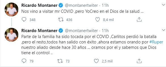 “Mi primo Carlos acaba de partir con Dios, en España, a causa de este virus. La vida es muy frágil y hay cosas que solo Dios sabe por qué suceden. Hay que cuidar a los nuestros”, había explicado Ricardo Montaner.