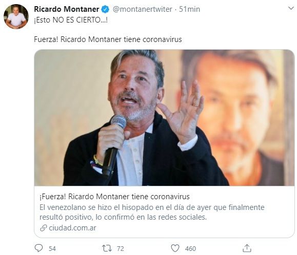 Lo cierto es que ante la noticia que salió publicada en todos los medios que el cantante se había contagiado el virus, el propio Montaner salió a aclarar que no tiene Covid-19.