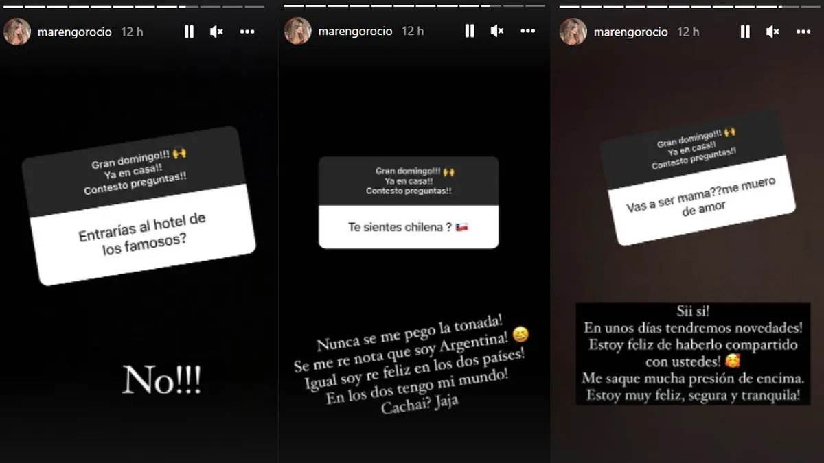 Lo cierto es que luego, Rocío Marengo respondió algunas consultas de sus seguidores en Instagram y en una de ellas dio detalles aún más precisos sobre la maternidad, y adelantó: “En unos días tendremos novedades".