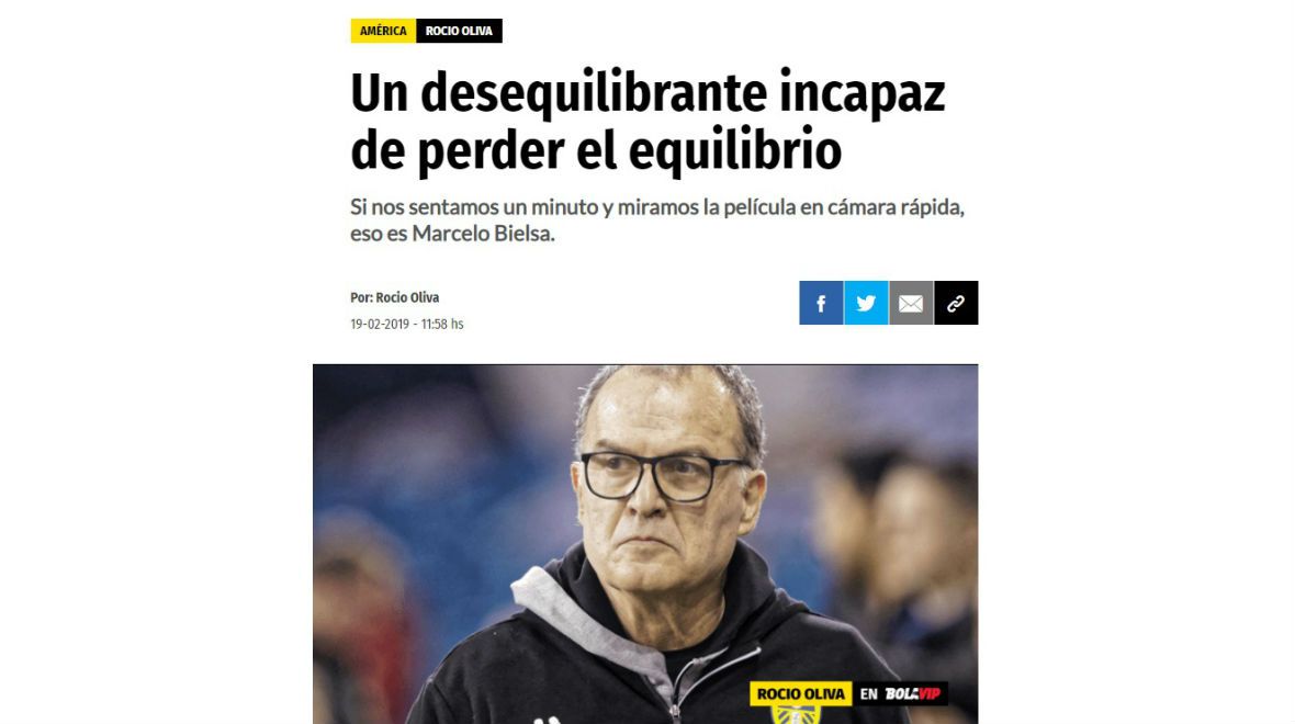 Se trata del medio extranjero Bola Vip y su primera columna fue dedicada a su análisis sobre el DT argentino Marcelo "Loco" Bielsa.