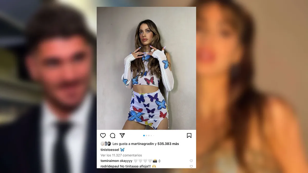 "No Tinita. ¡Aflojá!", escribió el jugador en una imagen, donde Tini está posando con un diseño lleno de mariposas.