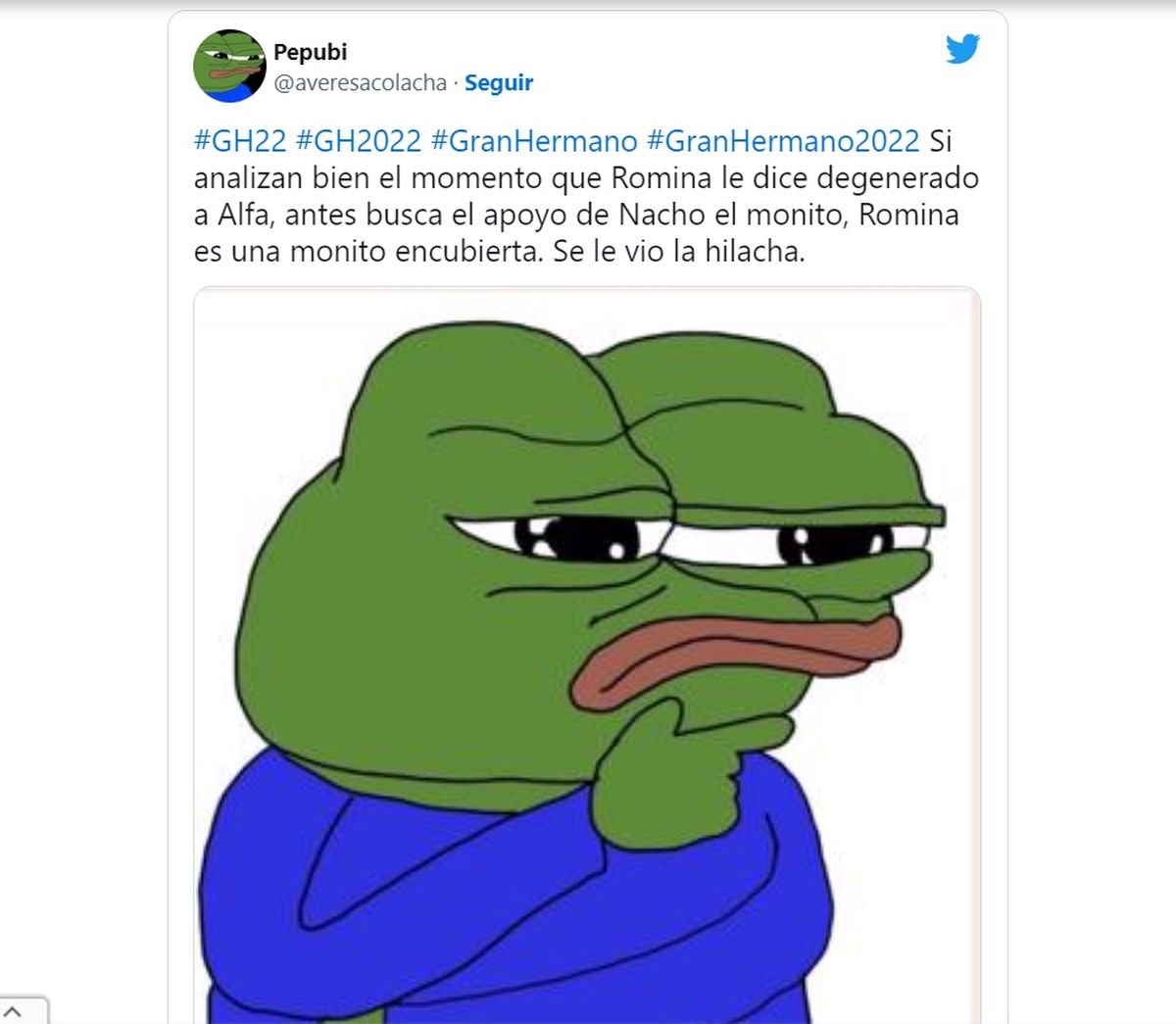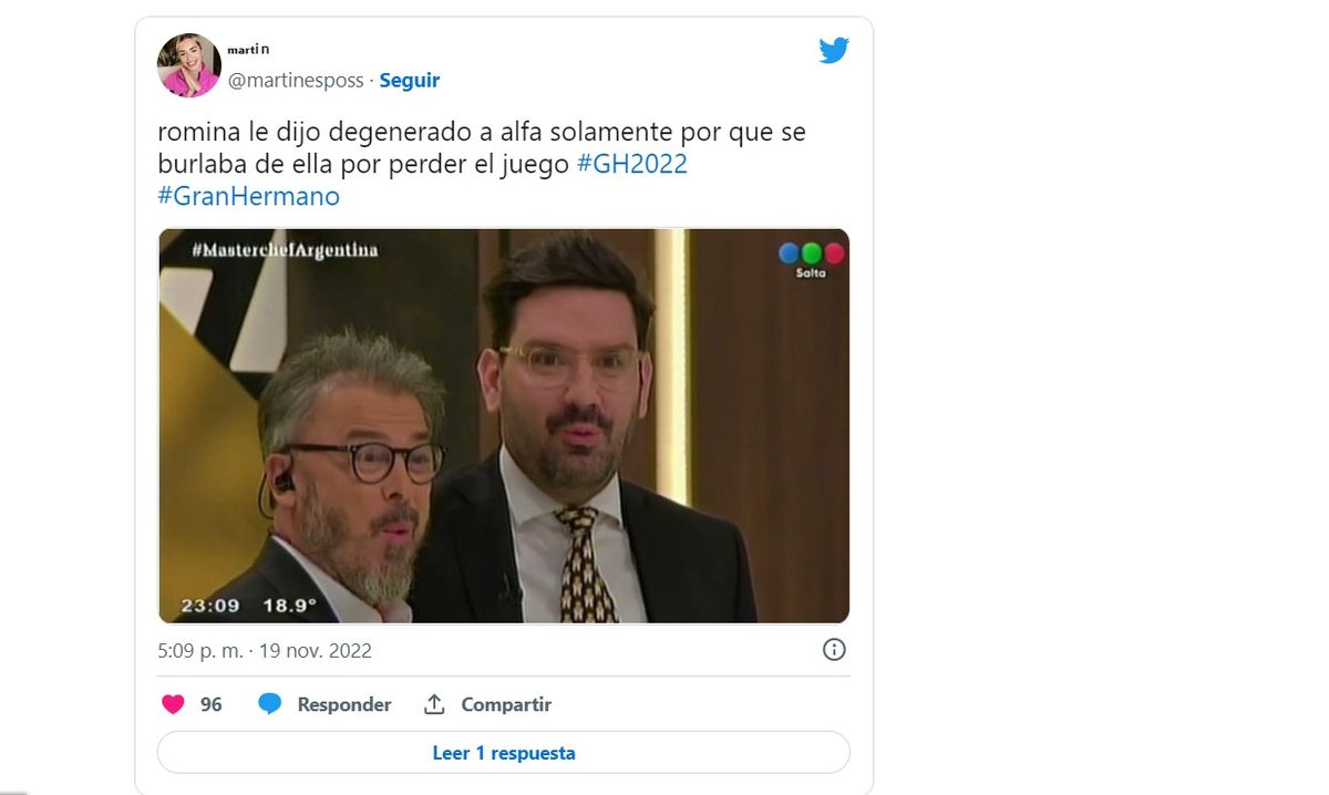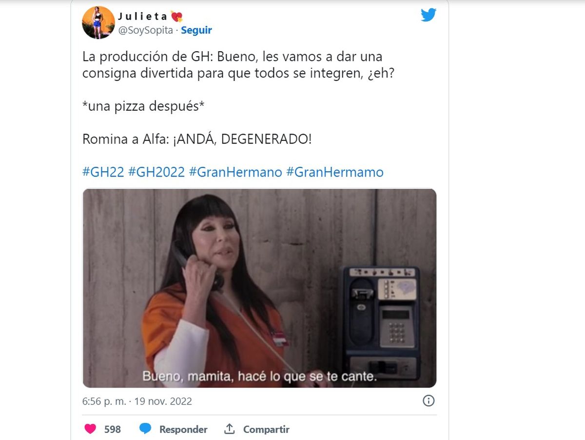 Lo cierto es que en las redes tuvo mucha repercusión este tenso momento entre Alfa y Romina en la casa y se llenó de memes en Twitter apuntando contra la ex diputada y su fuerte frase contra Walter. La mayoría de los mensajes repudió el accionar de Romina contra su compañero.