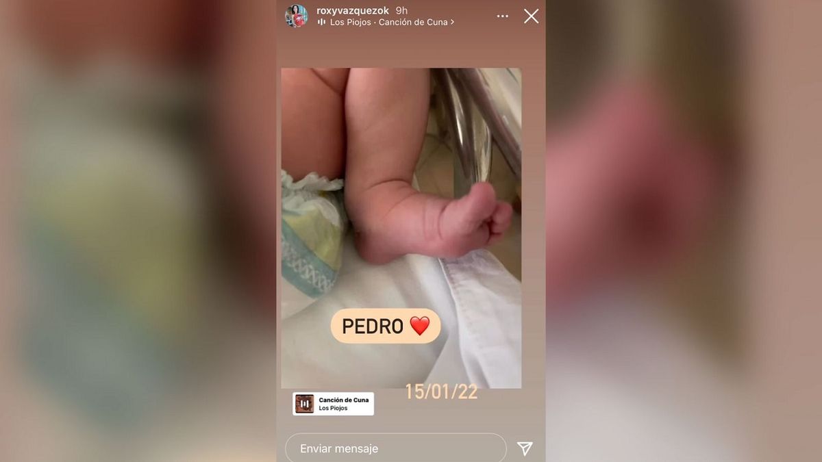 Y durante el sábado 15 de enero, Roxy Vázquez dio a luz a Pedro. Feliz, la periodista compartió una dulce foto de su bebe mostrando uno de los piecitos.