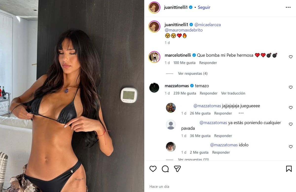Esto derivó en que varios usuarios reaccionaran a su comentario dando a entender que podría haber algo más entre los dos: "Juegue", "Ya estás poniendo cualquier pavada", "Ídolo", fueron algunos de los comentarios que recibió en el posteo al instante. En tanto, su papá Marcelo Tinelli comentó orgulloso ante las fotos subidas por su hija: "Qué bomba mi pebe hermosa".