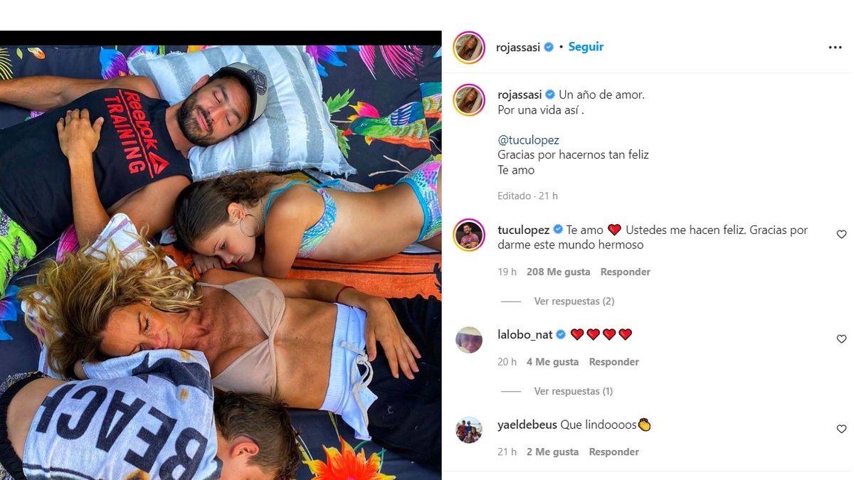 "Un año de amor. Por una vida así. @tuculopez Gracias por hacernos tan feliz. Te amo", subió a su cuenta de Instagram Sabrina Rojas.