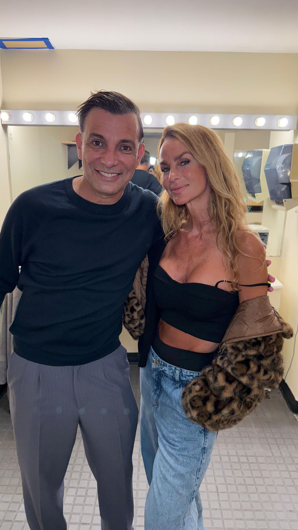 En camarines el actor y la actriz posaron para la foto y ella recordó cuando hace dos décadas fue la protagonista femenina de esta comedia junto a Guillermo Francella y Adrián Suar.