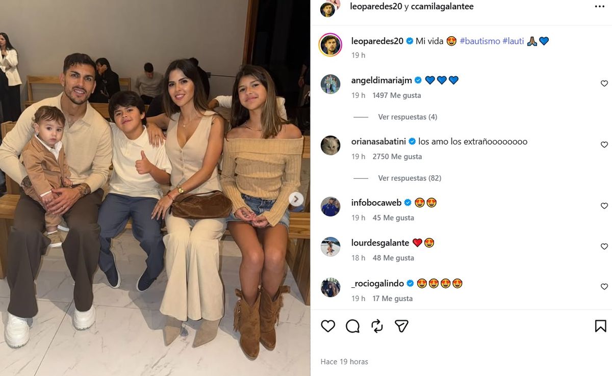 "Mi vida #bautismo", expresó el futbolista de Boca Juniors desde su cuenta en Instagram junto a algunas postales de lo que fue el especial festejo por Lauti.