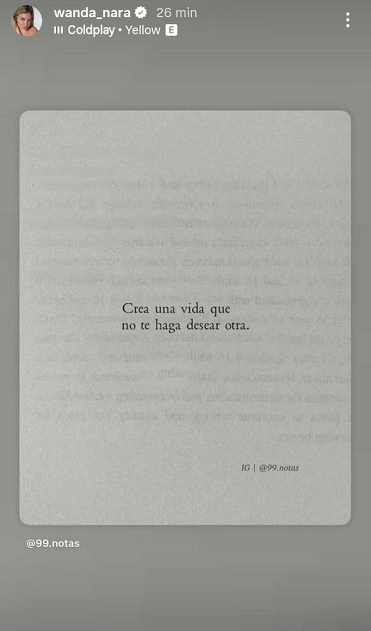 La reflexión que replicó en su cuenta decía: “Crea una vida que no te haga desear otra”. Una sentencia breve pero cargada de significado que acompañó musicalmente con Yellow, el clásico de la banda británica Coldplay. La combinación de texto y canción no tardó en disparar especulaciones.