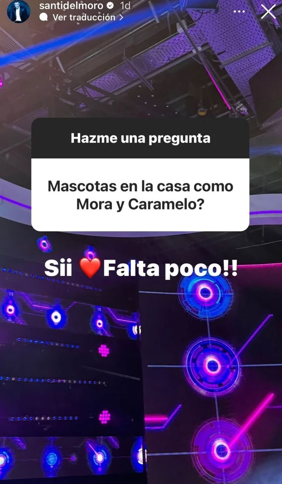 El conductor, que abrió la cajita de preguntas y respuestas de la red social, le contestó a un seguidor que le consultó si habrá mascotas en el reality, como hubo en la edición anterior. "Sí, falta poco" fue la respuesta del animador.