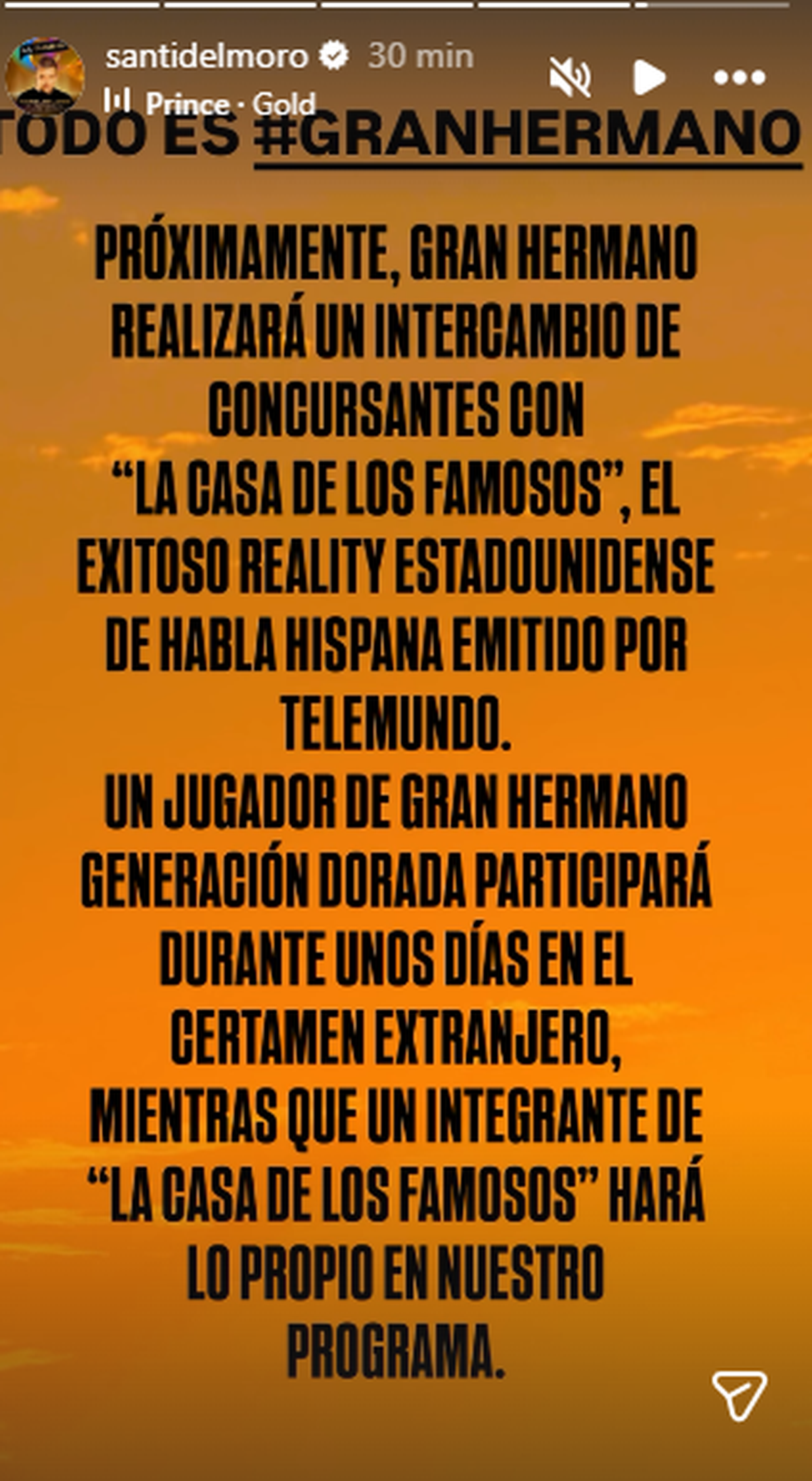 A través de sus redes, el conductor adelantó un giro inédito para el reality: "Próximamente, Gran Hermano realizará un intercambio de concursantes con la Casa de los Famosos, el exitoso reality estadounidense de habla hispana emitida por Telemundo".