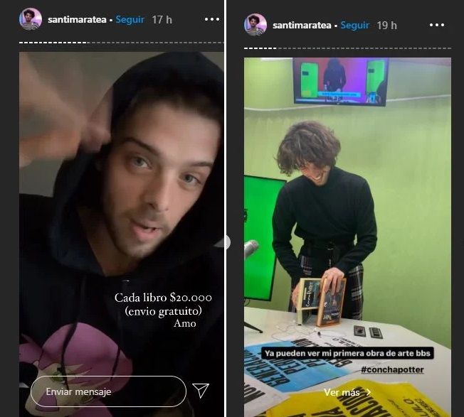 "Cada libro sale 20 mil pesos. Envío gratuito. Amo", describió en otra historia, asegurando que la gente se comunica con él avisándole que hay un error en el precio.