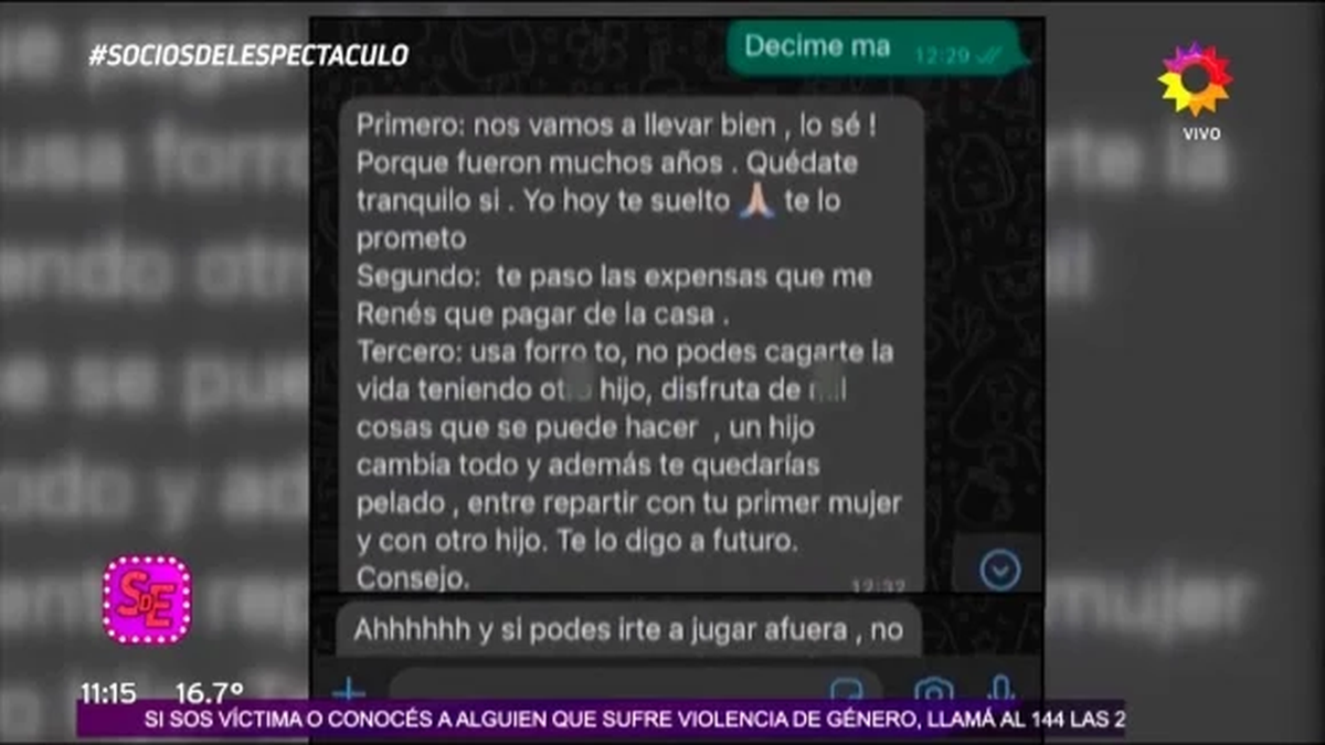 "Usá forro. No podés cag… la vida teniendo otro hijo. Disfrutá de mil cosas que podés hacer", le dice ella en uno los chats que compartieron al aire en el ciclo de El Trece.