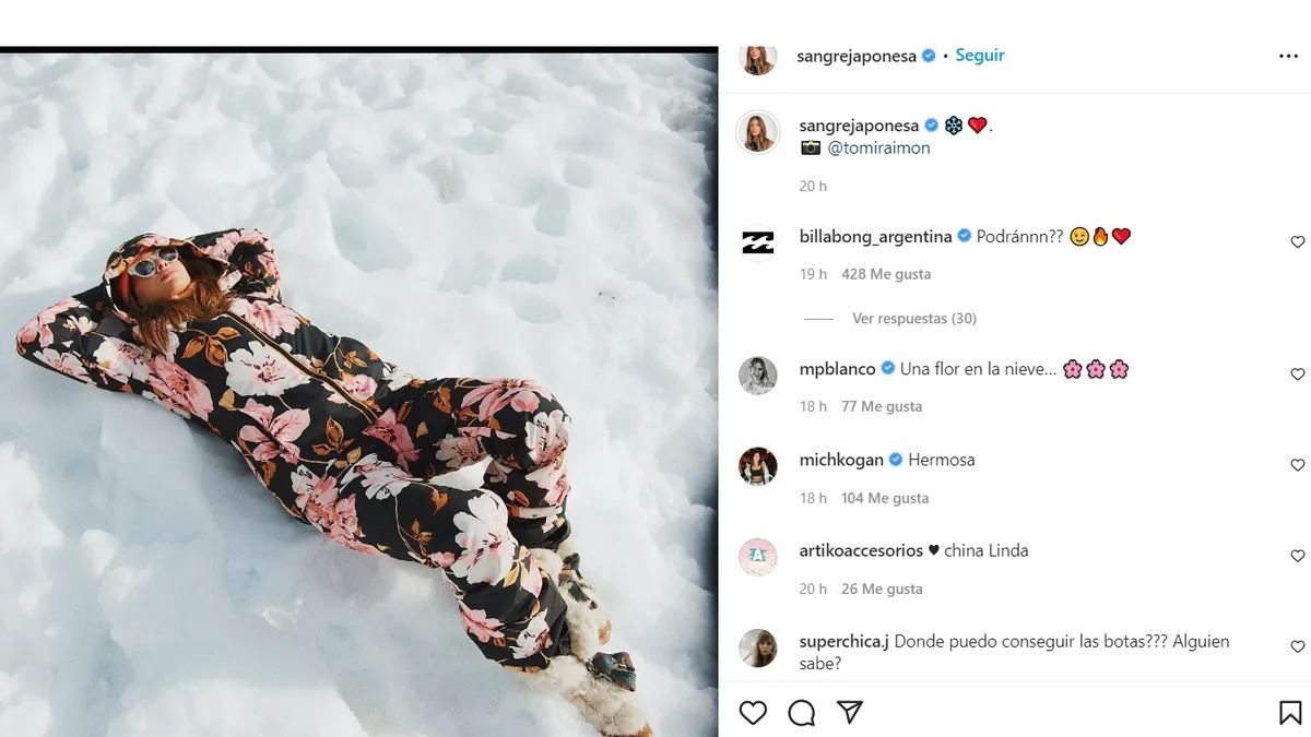 Suárez musicalizó el material con una canción bien romántica y además compartió unas fotos de la producción que hizo sobre la nieve.