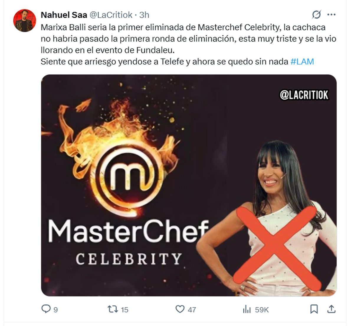 “El viernes en MasterChef Marixa (Balli) se fue llorando por algo que le dijo el jurado”, reveló Ángel de Brito en sus redes sociales durante el fin de semana, dejando entrever que la tensión se hizo sentir desde el arranque.